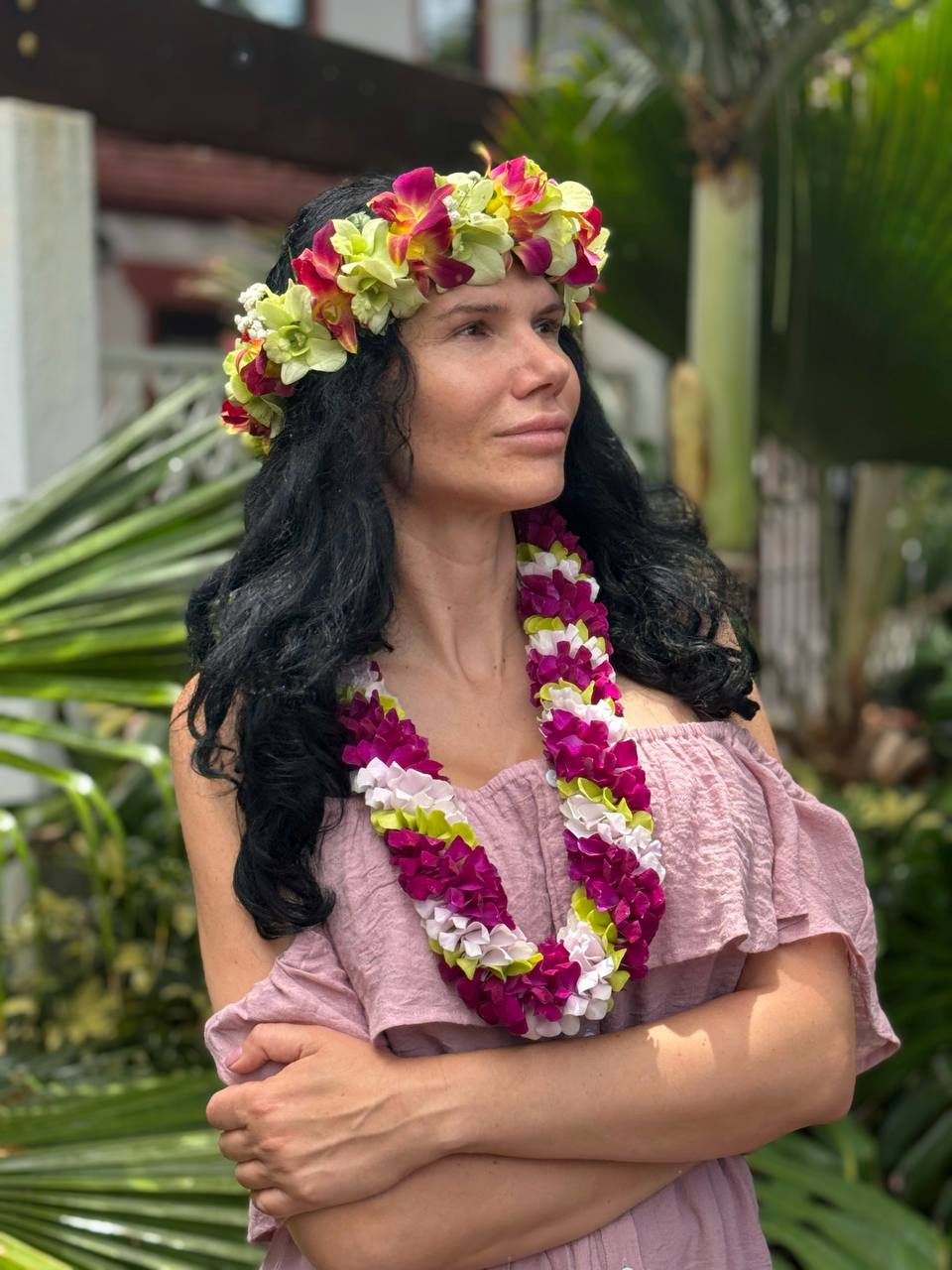 Grace your head with the timeless beauty of Haku Nani, a handcrafted premium haku lei designed to make you feel radiant and regal. Woven with vibrant island blooms and lush greenery, this floral crown brings together tradition and elegance in perfect harmony. Ideal for weddings, luaus, hula performances, or any occasion where you want to shine with aloha spirit and natural beauty.