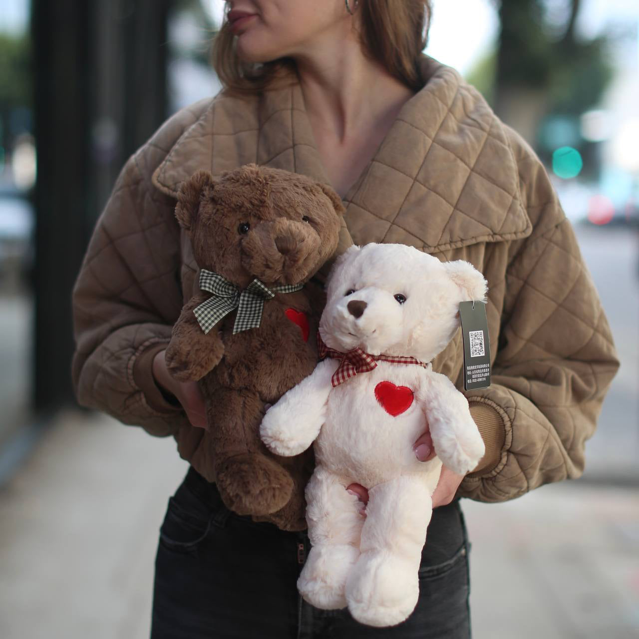 A soft and cuddly small white teddy bear, 30 cm (11.8 inches) tall. A sweet companion and a perfect add-on to any flower arrangement or gift.